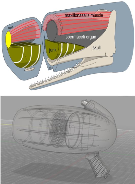 The Melon Gun is an underwater biomimetic communication device designed to research orca language.